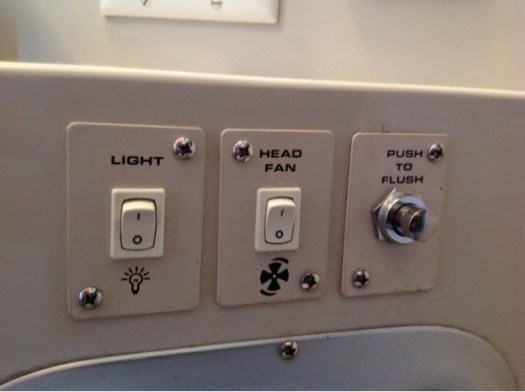 And the controls for the toilet are similar to that of an airplane. You just hold the button to flush.