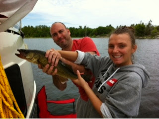 It seems that, since I was given a Fathers Day gift of a fishing rod and tackle, everyone now wants to get into fishing. Chris said he was going to get his own equipment on the way home and Steven says he wants to as well. The fact that some fish were caught (and released) may have generated some enthusiasm. It was Stevens girlfriend, Klae, who surprised everyone by catching a good sized pickerel.