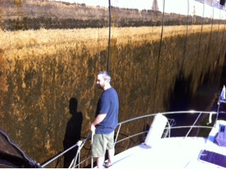 MY Jane joined me after she finished work yesterday and brought up 4 big carts full of stuff including groceries. The fridge is stocked. She made a great dinner and afterwards, we sat on the aft deck taking in the view and talking.