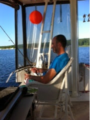 Later in the day, I wanted to change one of the safety lines that goes between the stanchions and allows access to the boat. I knew, from past experiences, that working over water is risky…… Dropping stuff in the /:($&$@ lake. Well it happened again. Dropped the darn safety line in the drink! Of course my biggest fan and supporter (Jane) could barely contain herself. In fact, when I taped two boat hooks and a fishing net together to try to retrieve it from 20 feet of water, she couldn’t resist the opportunity to do a video of the event which she promptly posted on Facebook.