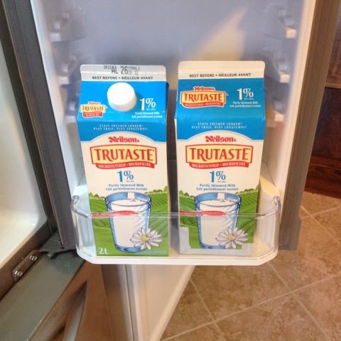 When I went to get milk for my coffee this morning, I discovered that one of the milk cartons was leaking. Luckily, they were sitting on one of the door shelves that has a tray arrangement so the milk didn’t leak all over the place.