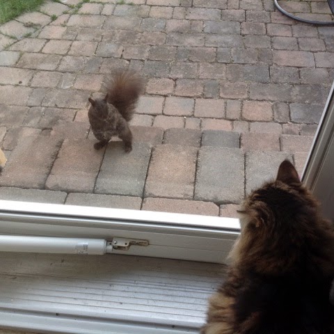 I am sitting at my favourite spot – the kitchen table overlooking the back yard. MY Jane and I now have a few regular visitors to our back door each morning. One is a robin that is nesting nearby that we feed with craisins. The other is a black squirrel we call Petey. We call him that because Jane’s Dad, Bill, used to call the squirrels up at the cottage “Petey”.