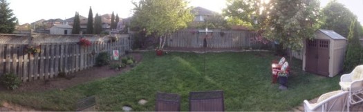 I have now decided that sitting in the back yard is my preferred spot for morning coffee. Especially on a bright sunny day like today.