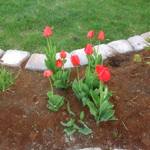 The tulips in our front and back gardens are finally blooming. We have been waiting impatiently. Our crocuses were eaten by a rabbit or squirrel and some early tulips were eaten too. But MY Jane got some rabbit repellent and it seems to work. So far, the tulips are thriving.
