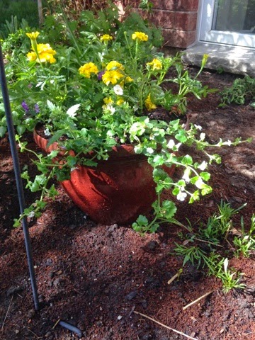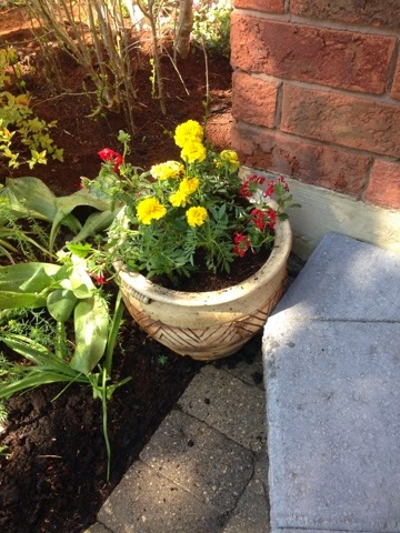 Yesterday, MY Jane went to Walmart and bought a whole bunch of Annuals to add some colour to our garden. She put together some really nice arrangements.