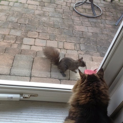 I am sitting at my favourite spot – the kitchen table overlooking the back yard. MY Jane and I now have a few regular visitors to our back door each morning. One is a robin that is nesting nearby that we feed with craisins. The other is a black squirrel we call Petey. We call him that because Jane’s Dad, Bill, used to call the squirrels up at the cottage “Petey”.