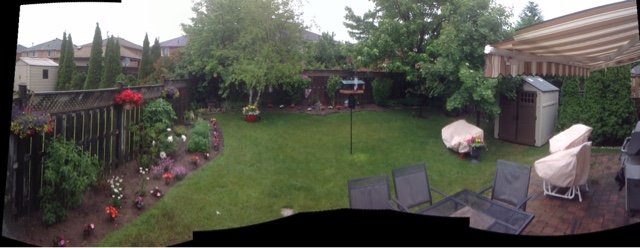 After the BBQ yesterday, I put the new chair covers on the patio furniture just before the rain began. Fortunately, we have the roll out awning over the patio which kept me dry during the time I was using the BBQ.