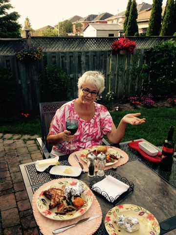 We then went to Canadian Tire where I bought some light polyester rope to include in our camping gear and, after we got home, we decided to BBQ a couple of pork chops and have dinner on the patio. It was delicious.