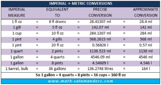 I was raised using the imperial measuring system. I was taught about pints and quarts and gallons. About ounces, pounds and tons. About inches, feet, yards and miles. It became so ingrained that I could easily visualize what people meant when they used any of these terms.