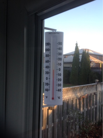 This morning there is clear evidence of frost on the ground, the first time since last year around the same time. The thermometer is showing below zero.