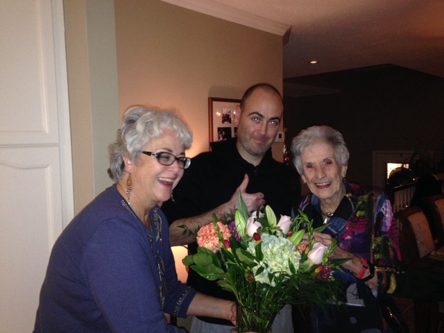 Yesterday afternoon, Jane took Ted to get her hair done and to bring her back to our place. This weekend we are having a little birthday celebration for her 94th birthday. Steven arrived last night with a beautiful bouqet of flowers for his Grandmammy.