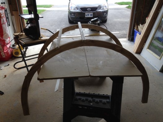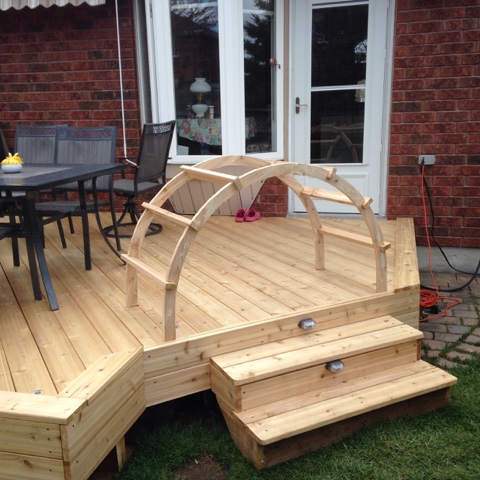 Today I began working on the arbour project. I decided to tackle the more difficult part which was making the two arches. I am using the same cedar as was used in the deck.