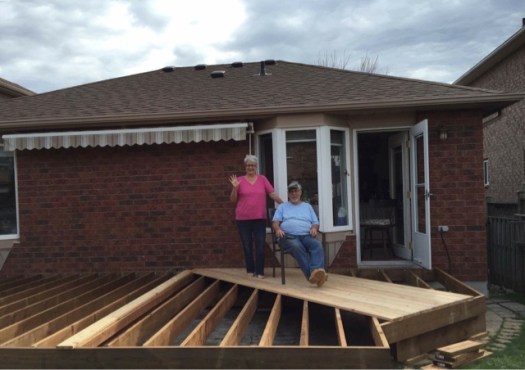 Yesterday was a great day to get going on deck construction. My cousin George came over to help and we made great progress. Here’s a picture at the beginning of the day.