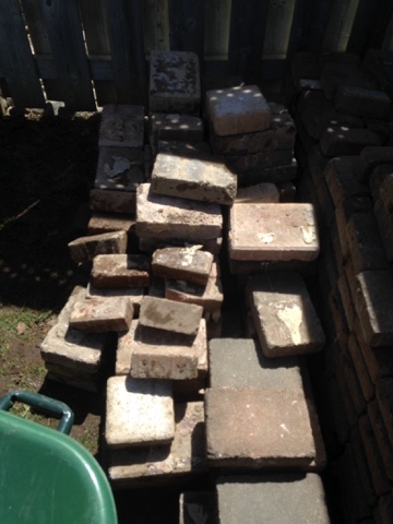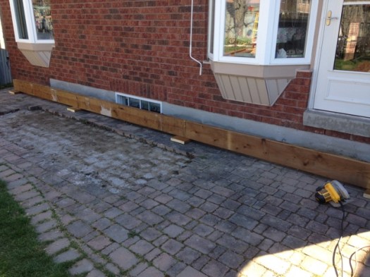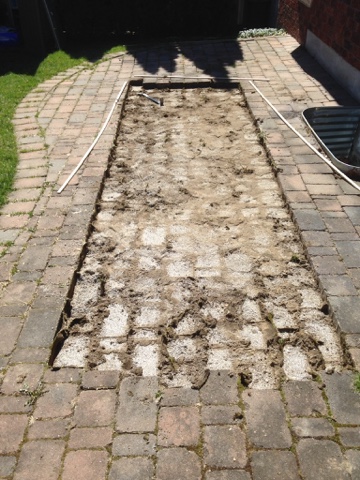 Yesterday MY Jane worked on getting the inside of all the windows on the main floor cleaned and then we lifted enough patio stones to make a sidewlk beside the house where the hose bib is located.