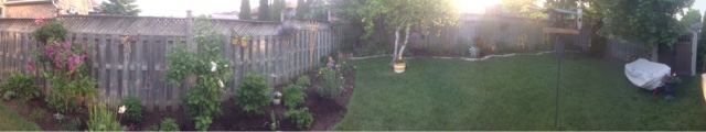 MY Jane and I started working on the deck this morning with the idea of finishing the second half by 4PM. Things went very smoothly and we ended up done by 1 PM . That gave us a chance to actually sit outside and enjoy a different perspective of the garden.
