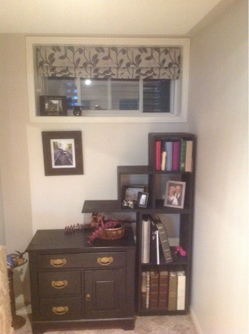 Last year I built some “steps” around a little buffet that lead up to one of the Family Room windows. We call it Minnie’s window. They were to make it easier for Minñie to get in and out of the house on her own. It works very well.