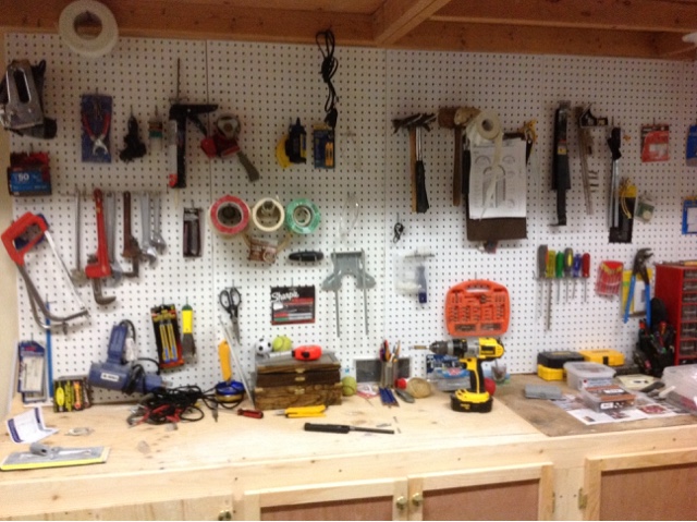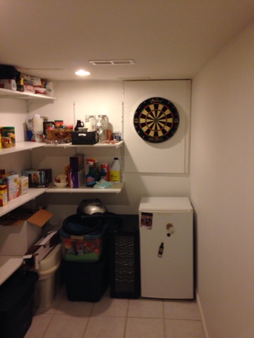 Today, I am gathering up the tools and hardware that will be needed to help Chris build some shelving in his downstairs pantry area. He has already cleared everything out of there except for the bar fridge.