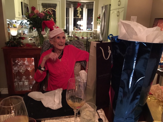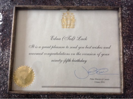 Last night we celebrated Teds 95th birthday at our place with Steven & Sara, Chris & Tonya and Jane & Me. We began with a delicious dinner of pan seared scallops (one of Teds favourites) and lemon pepper fettuccine, sautéed asparagus, oven roasted squash and birthday cake for dessert.