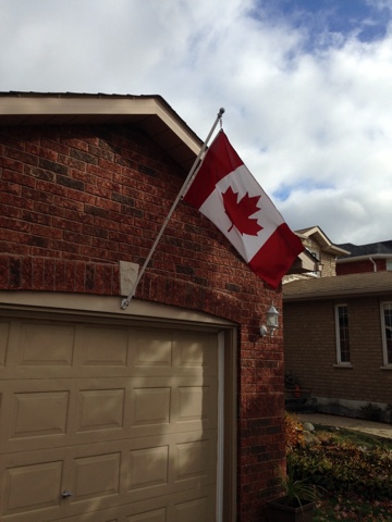 Today I replaced our Halloween flag over the garage with our Canadian flag. And I put up a poppies garden flag on the front lawn.