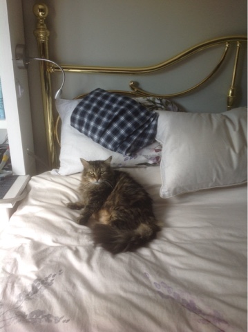 There are traces of frost on the deck this morning and Minnie is not so quick to dash outside.