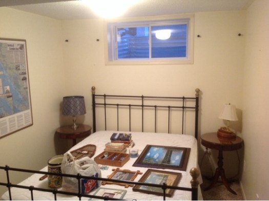 Yesterday, MY Jane and I took two oil paintings, one by my Mother of Lake Temiskaming, and the other of Georgian Bay painted by Jane’s uncle, John Gropp. It’s all part of the guest bedroom update, a picture off which I will post once it is completely finished. We are now just waiting for window blinds and a new quilt.