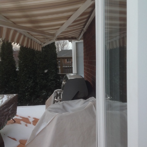 Last night it was 9C above zero and raining. Despite that, I fired up the BBQ for the first time in 2017 and put on a rotisserie chicken. I rolled out the awning a bit to stay dry.