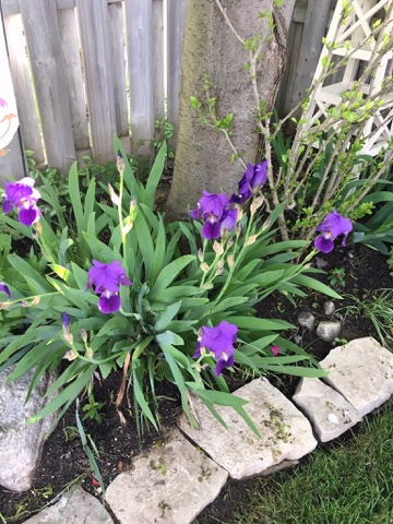I was pleasantly surprised this morning to find that a bunch of irises in the far back corner of our garden had flowered seemingly overnight.