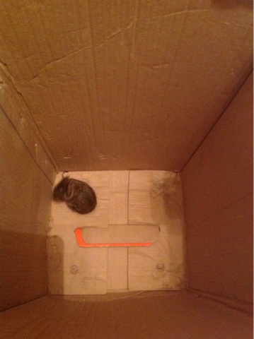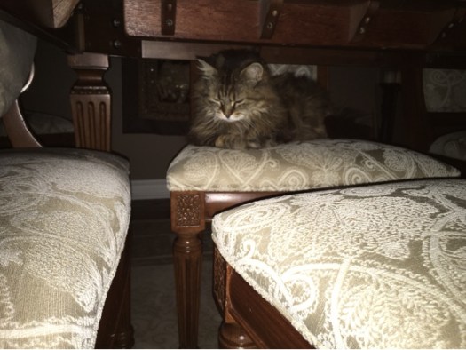 Last night, shortly before we retired for the evening, MY Jane heard a commotion at Minnie’s window. she jumped up and got a flashlight just in time to find Minnie coming back in carrying something wriggling in her mouth.