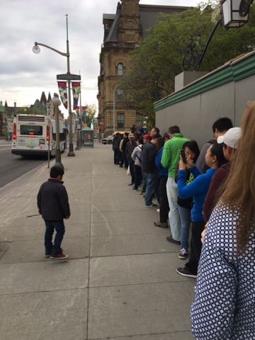Yesterday, as soon as we got up, MY Jane and I walked over to the Government of Canada office across the street from the Parliament Buildings to obtain a couple of free admission tickets to tour Parliament. Even though we arrived an hour before the office opened, there was a huge lineup.