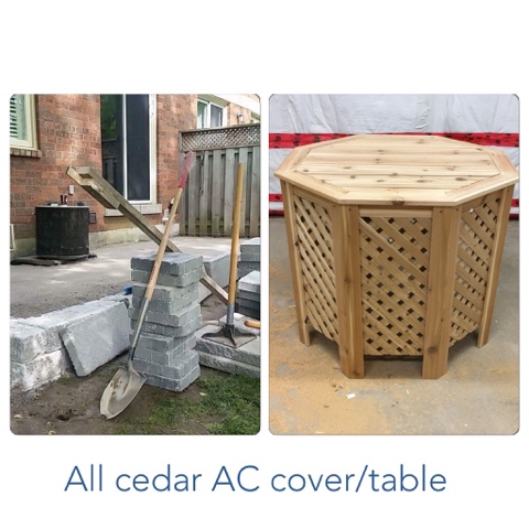 A few days ago I wrote about MY Jane and I driving to Chris’ place to surprise him and have a look at his newly installed patio. While we were there admiring the great job that he and his friend did, the idea came up to make a table to cover his air conditioning unit.