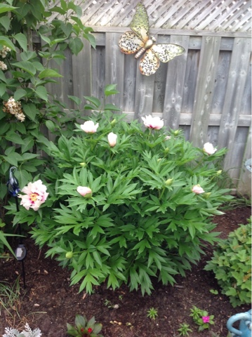 Last year, MY Jane and I planted some Honeysuckle and Clematis on the arbour that I made, the hope being that, after a few years, those plants would climb up on either side and eventually meet at the top. We were not expecting any flowers for a couple of years.