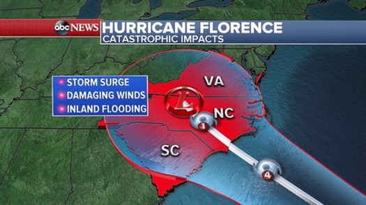 I have been watching reports on Hurricane Florence which is heading for the South East part of the United States.
