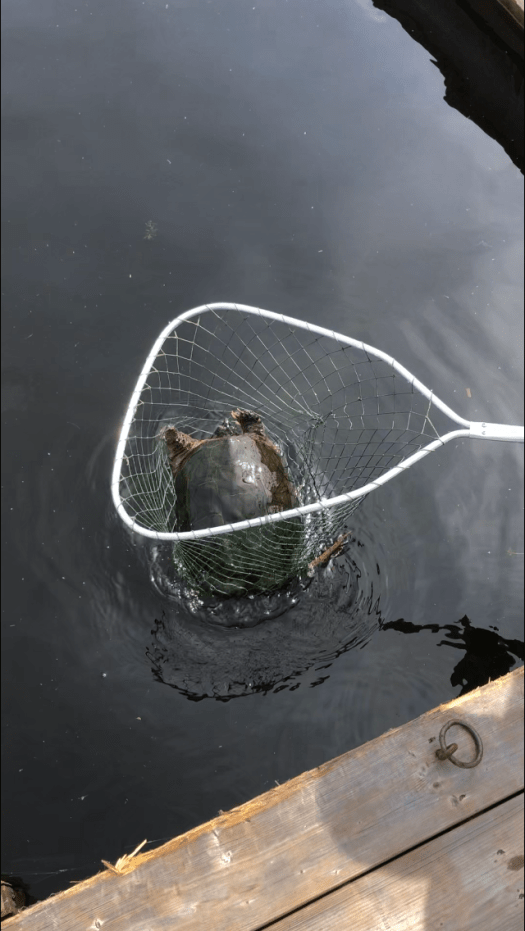And after breakfast he headed to the dock in search of the resident turtle. He found it.