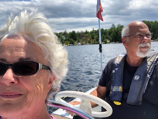 We went all around Skunk Island and looked at cottages west of Bonnie Island. We didn’t see any skunks, but we did stop, turn the engine off and watch a loon fishing for awhile.