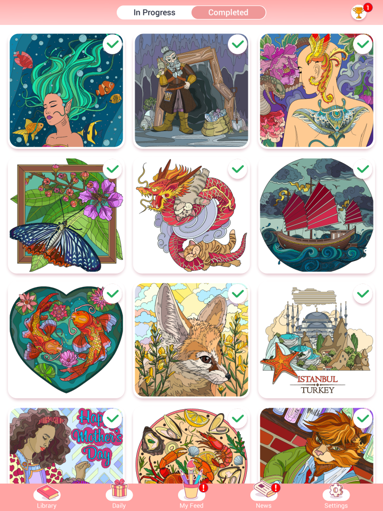 Both Jane and I have begun to do more colouring to pass the time. It’s so easy and it’s free; you simply tap your colour choice from the colour bar and that corresponding colour gets grayed out on the outline of the picture, helping you to find those spaces to colour.