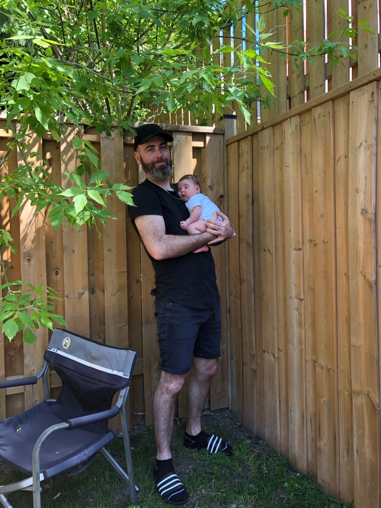 Right after breakfast we eagerly headed off to Sara and Steve’s to have a social distanced visit with Roxana! Steve proudly met us in the back yard and she was beautifully sleeping when we arrived. I could see that Jane wanted to rush over and pick her up!