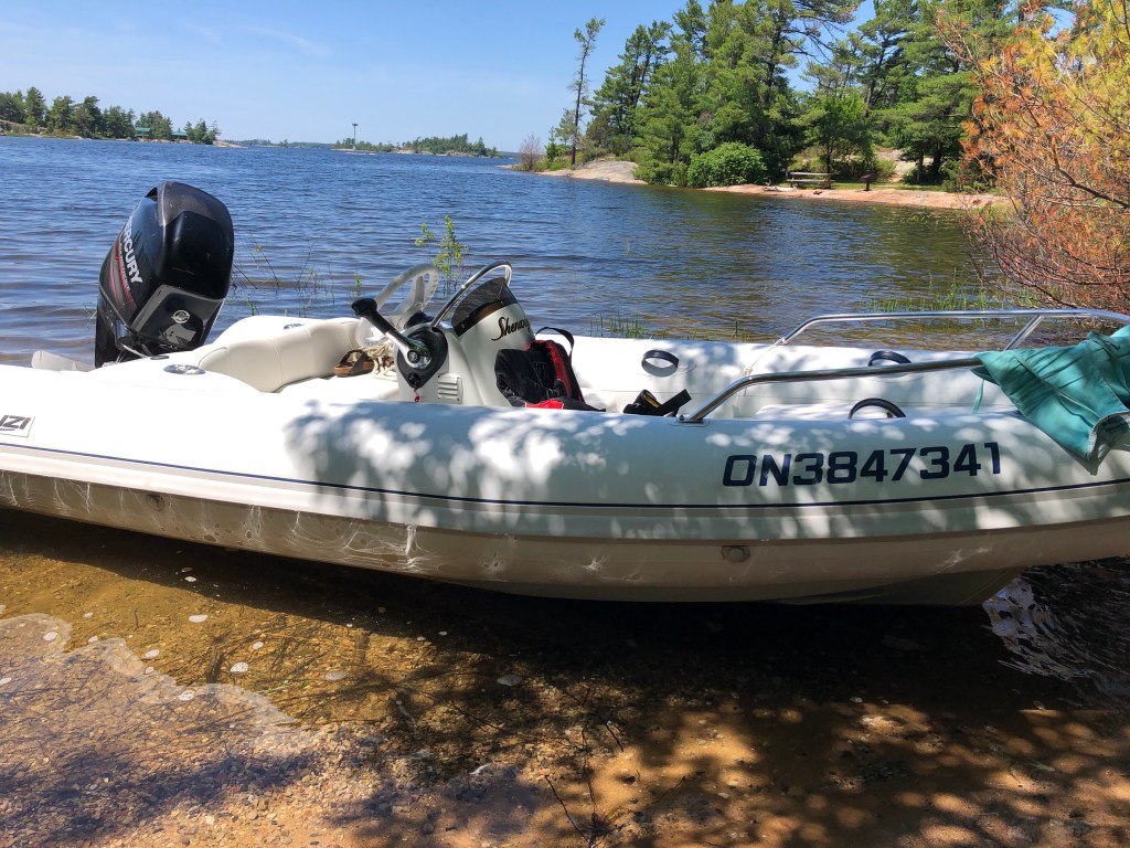 This morning we decided to finally head up to Honey Harbour to take the dinghy out for the day. It was a gorgeous day and the bay was calling!