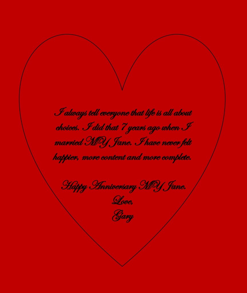 Yesterday Jane and I celebrated our seventh anniversary. And it seems just like yesterday that we were married at Tonche East on Georgian Bay.