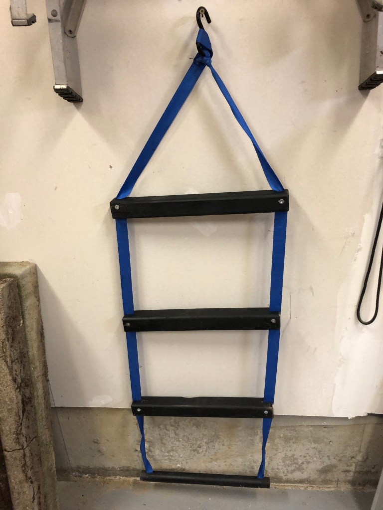 Yesterday I finished assembling and testing the boarding ladder project. Keeping in mind the details of the dinghy, I’m pretty sure that this will hook nicely onto the side.
