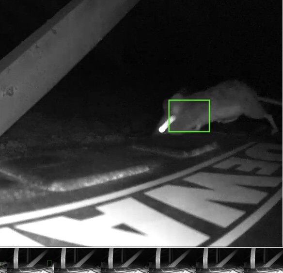 This morning I checked my Wyze cam events and saw the movement which had triggered the camera at 8:42 pm last night; the trap had been activated and caught one mouse.