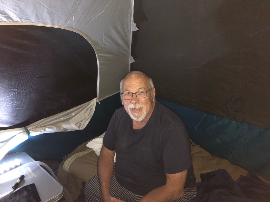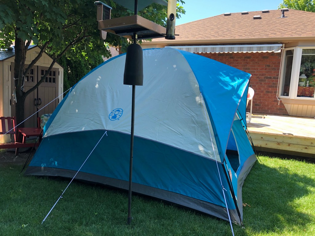 We had brought our lunch with us as well as camp chairs and a small folding table and we sat under the shade of an evergreen tree that Steve had thoughtfully just pruned, so the branches didn’t rub on our heads.