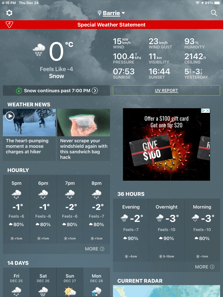 The last couple of days have brought much milder weather to Barrie, enough to take a lot of the snow away. We’re not complaining, though. It’s just unusual for this time of year.