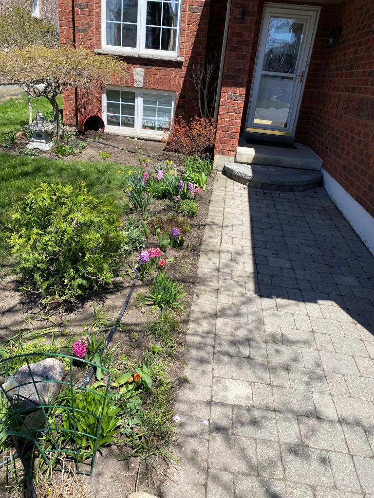 The front flower bed is blooming like crazy. And Jane returned from a Mothers Day brunch at the Guild Inn with more. Chris treated her there and Steve showed up with a beautiful bouquet after finding out that the flowers he ordered online never arrived in Barrie.