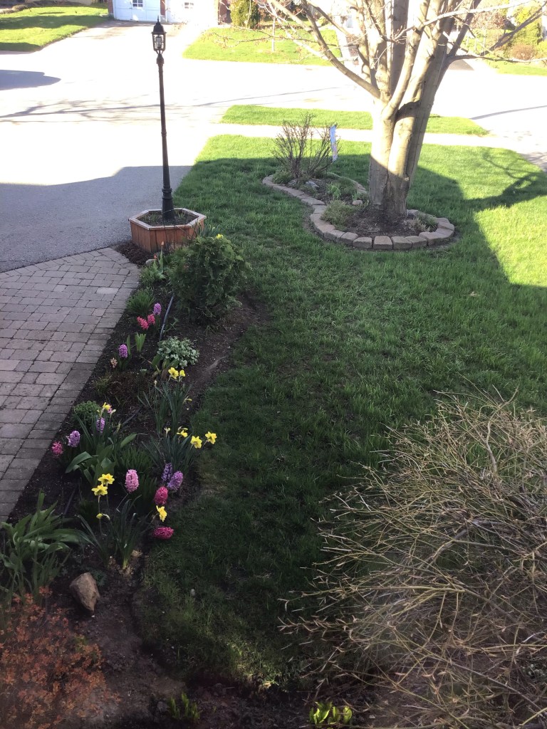 And this time of year, the flowers are quite lovely, we have lots of bulbs now in the front flower bed .