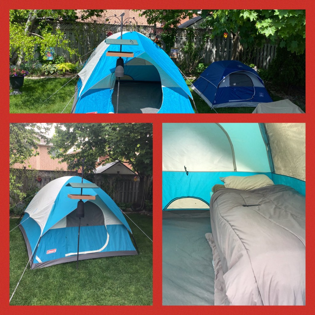 So I brought out the camp cot and sleeping bag and set everything up inside the tent.