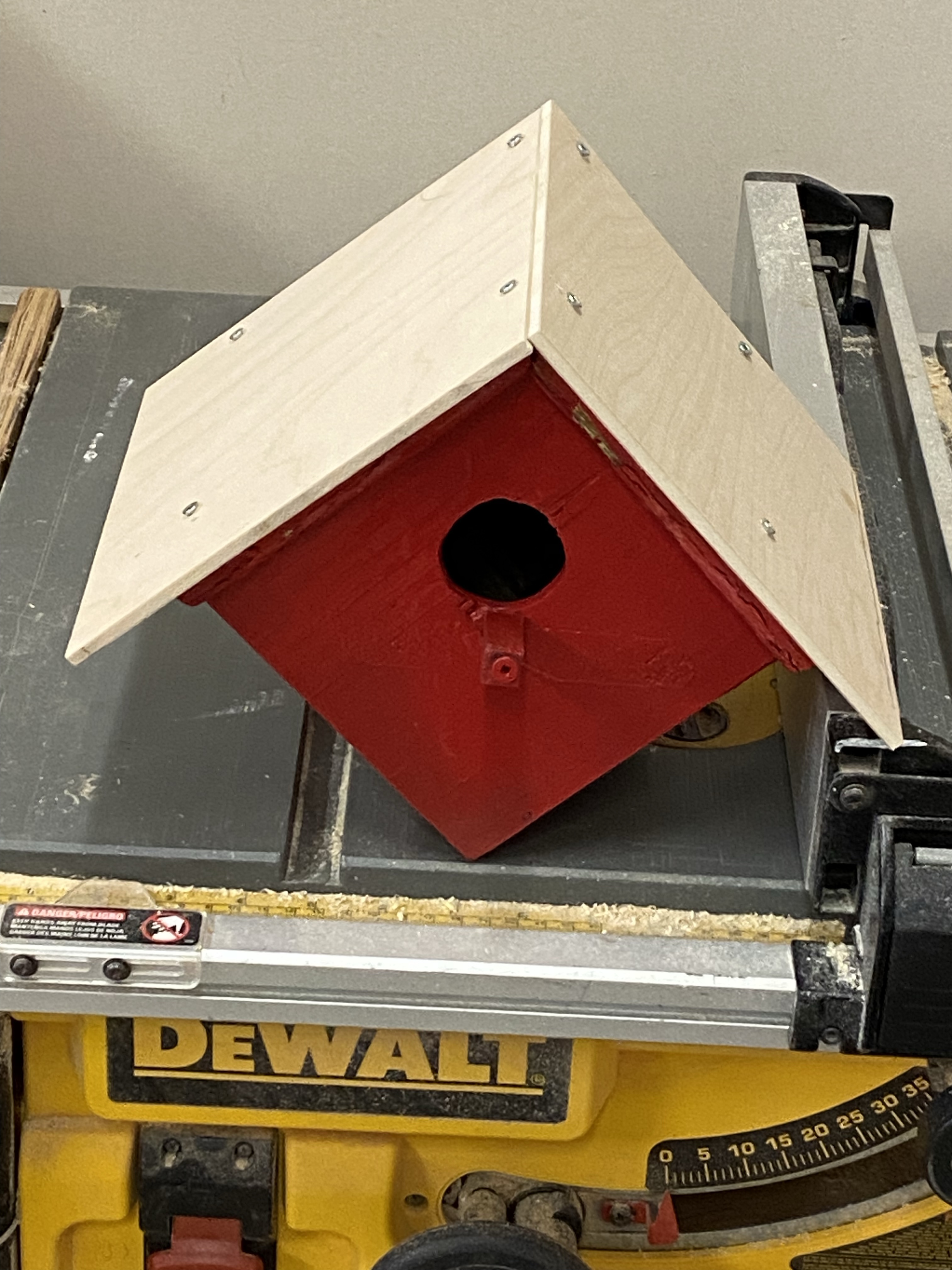 Today I put anew roof on the refurbished birdhouse that Jane’s Dad made when she was a little girl.