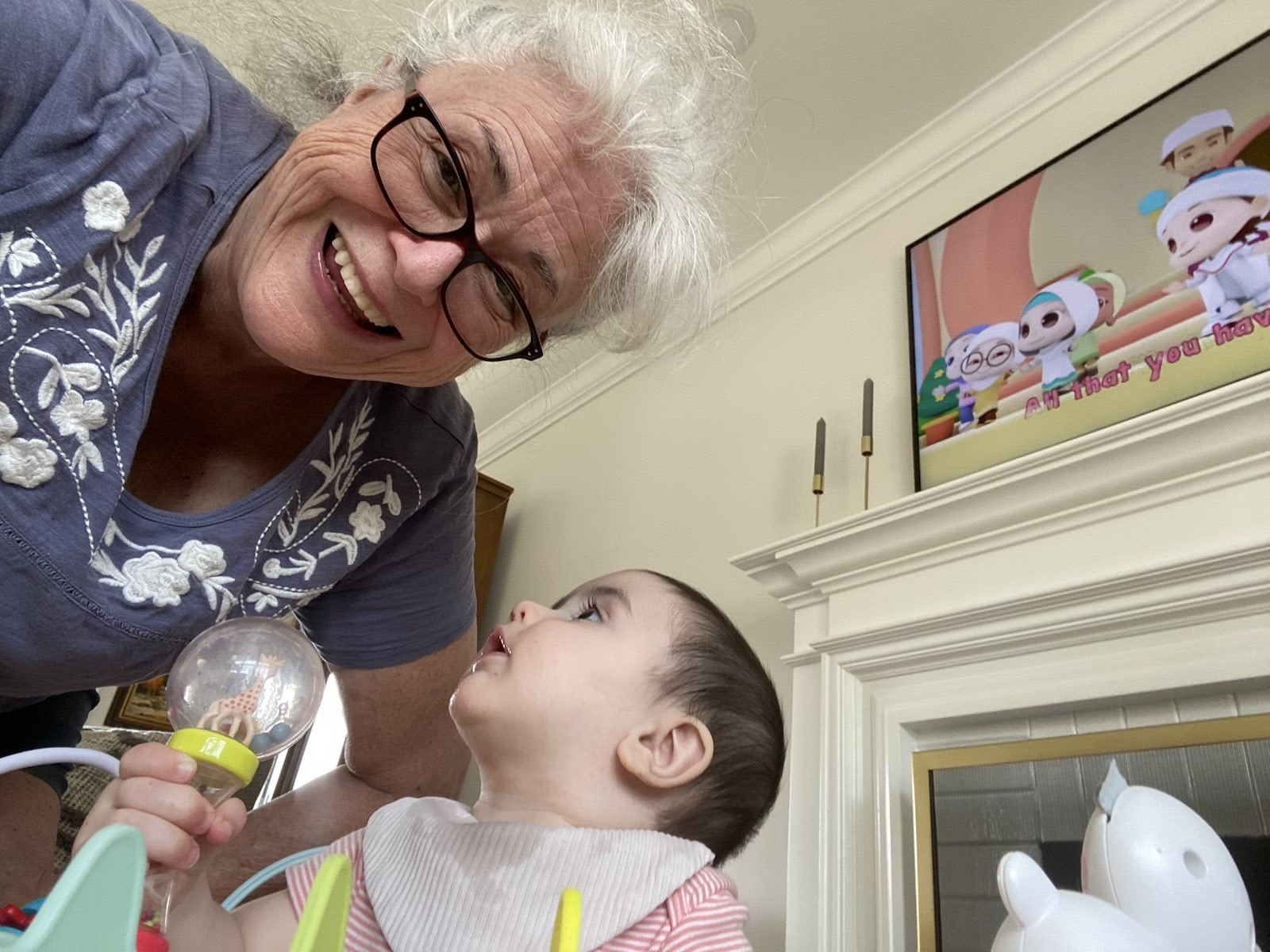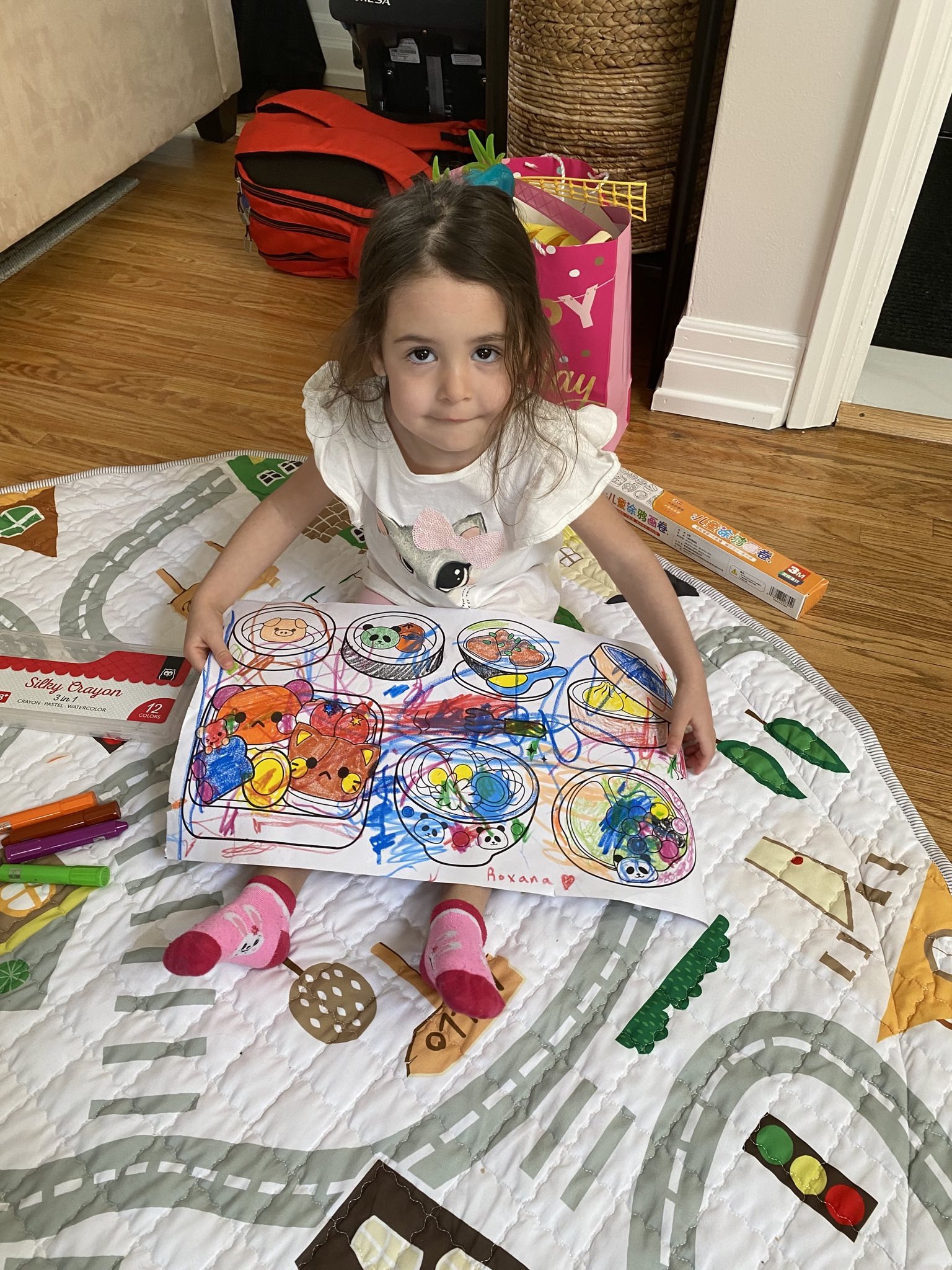 She had a wonderful time there especially with Roxana and Royce. Colouring paper, noisy toys and strange faces (Jane’s!)