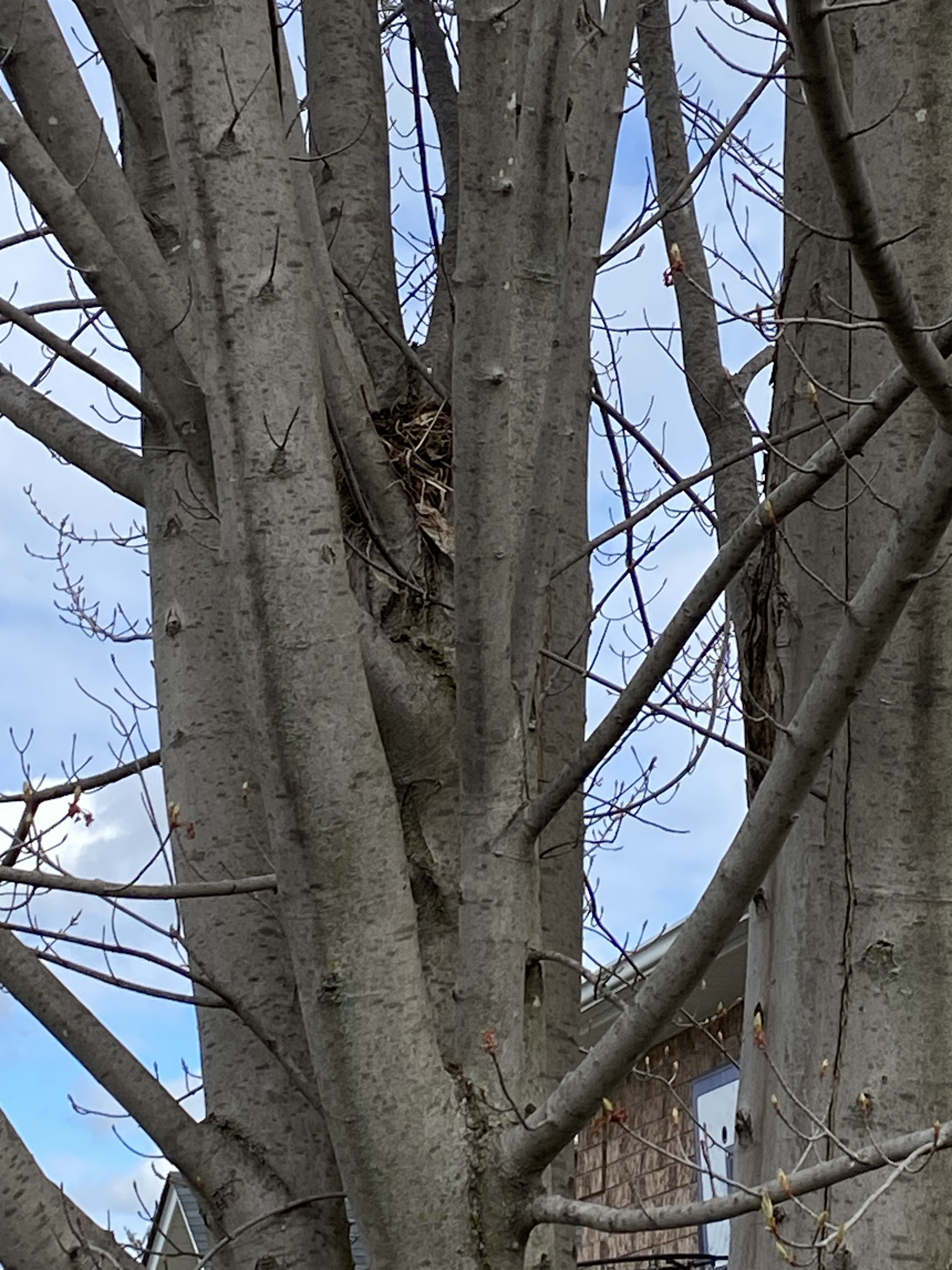 While doing that, I noticed a robin working on building a nest in the large maple tree in our yard.