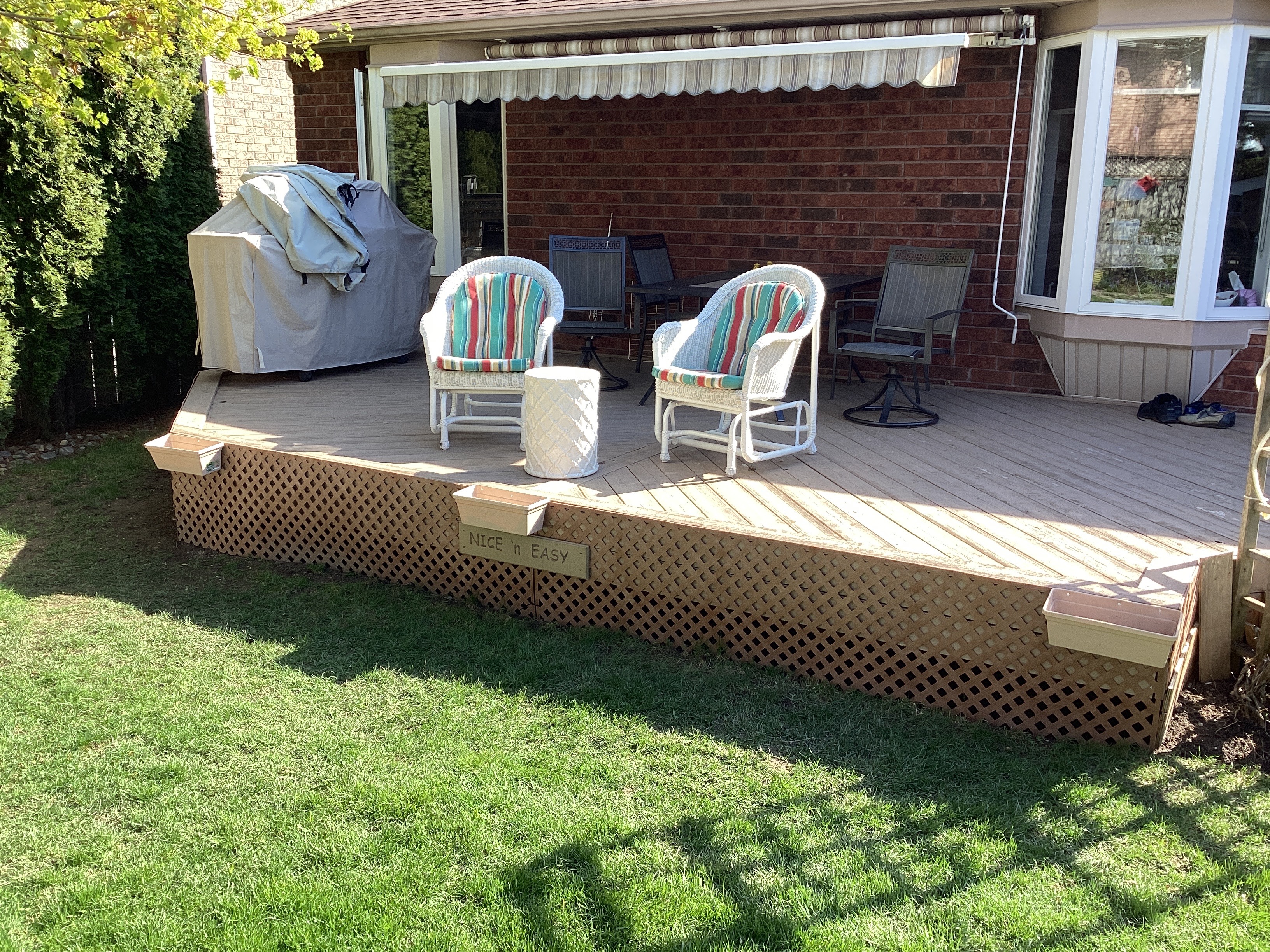 Then I trimmed the Japanese Maple in the front yard after which I installed three flower planters on the front of the back deck.
