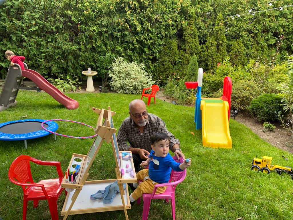 It was a family affair and the back yard at Steve and Sara’s was full of toys, slides, swings and a brand new sandbox. The kids had a blast!